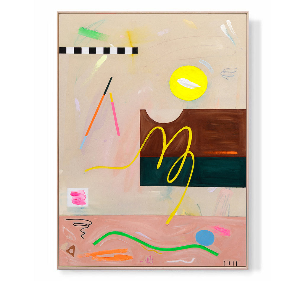 Acrylic, gouache, marker, oil pastel & collage on canvas