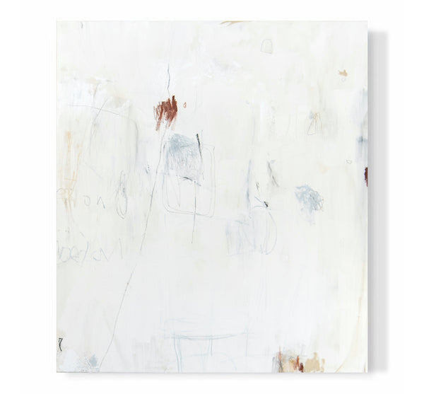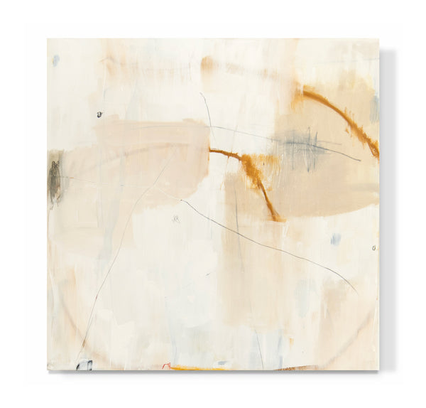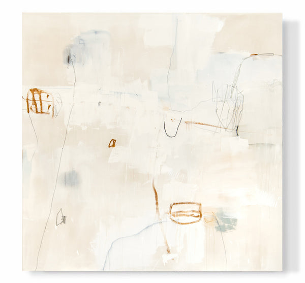 ARTIST STATEMENT: "I paint to explore the intersection of personal authenticity and its interaction in the natural world. For me, painting is mystical and flows intuitively from inspiration that links my mind and heart together. Informed by my love of natural and inorganic objects and their minimal simplicity, my recent paintings honor the beauty and peaceful subtlety of these forms with a neutral palette and raw, minimal mark making.