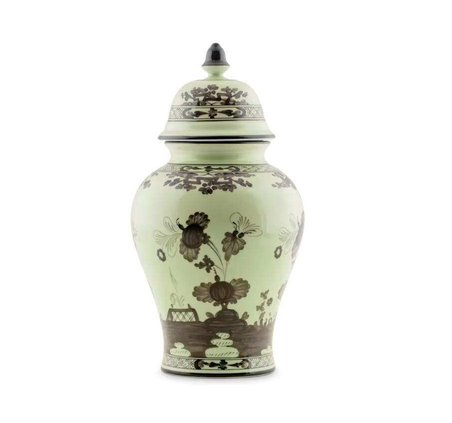 Exuberant, exotic, enticing. A stylized flower, known as the “garofano” — carnation — in the tradition of Florentine ceramics and reinterpreted by Gio Ponti in 1946, evokes distant memories in the Oriente Italiano Collection. The graceful, delicate hues of dawn and dusk glisten on porcelain like a symphony. This is the scenario of the Oriente Italiano Collection on the Antico Doccia shape, where the airbrush technique and the inventiveness of colour converge to create a magnificent pattern.