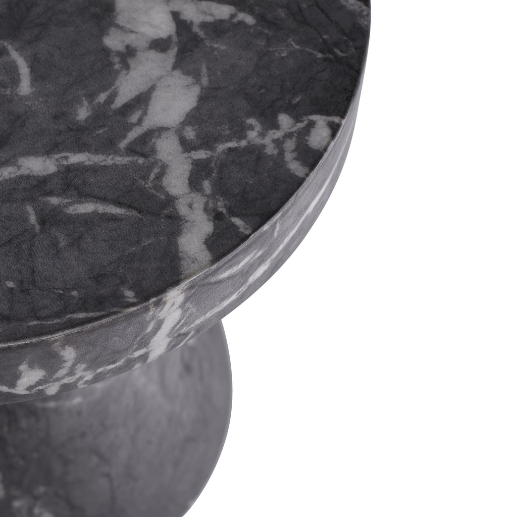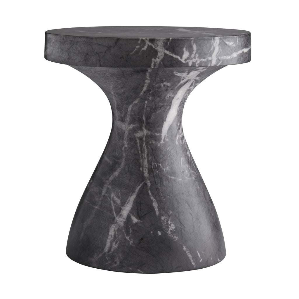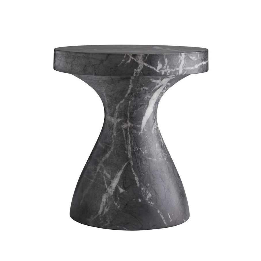 Black faux marble accent table made from lightweight concrete. Its marble-like façade is made in a process called hydrographics. Since the process is done individually, each piece will have a look that varies slightly in veining and color scale.