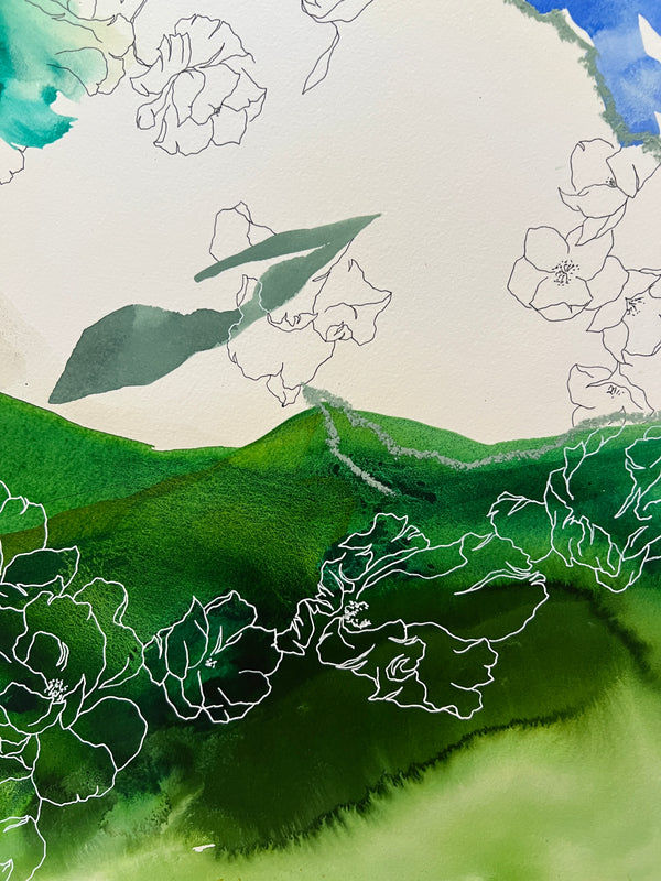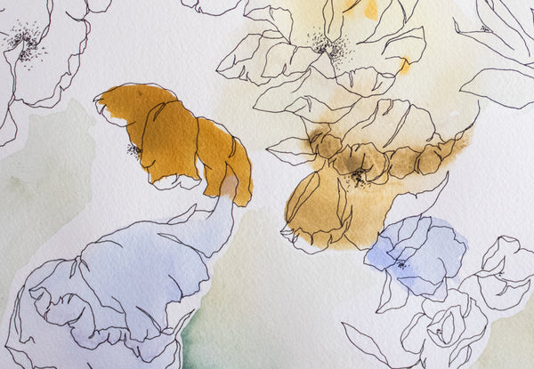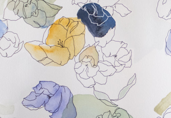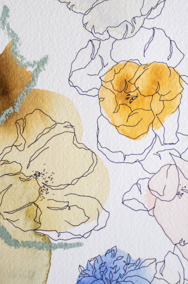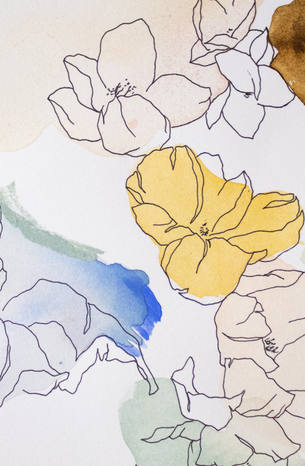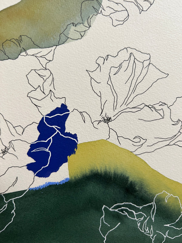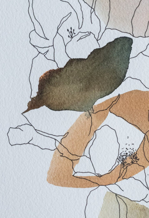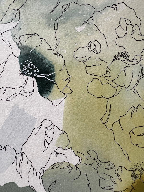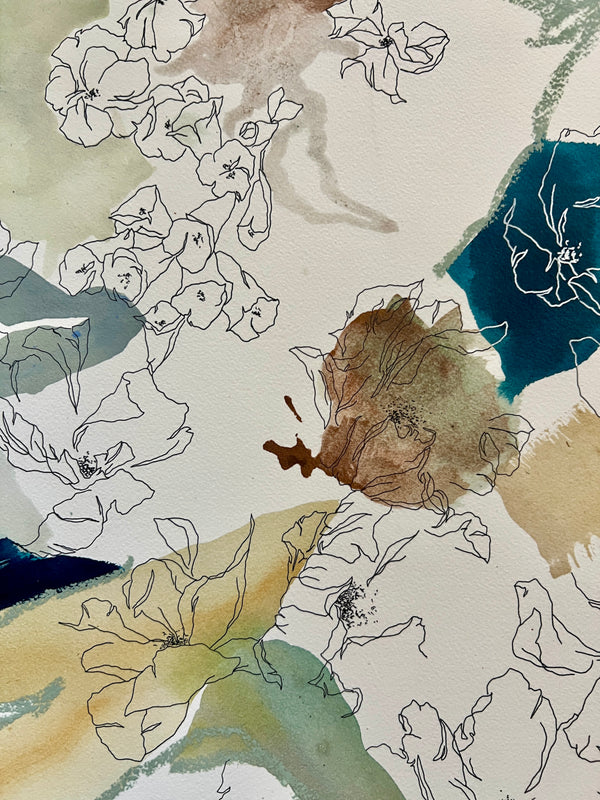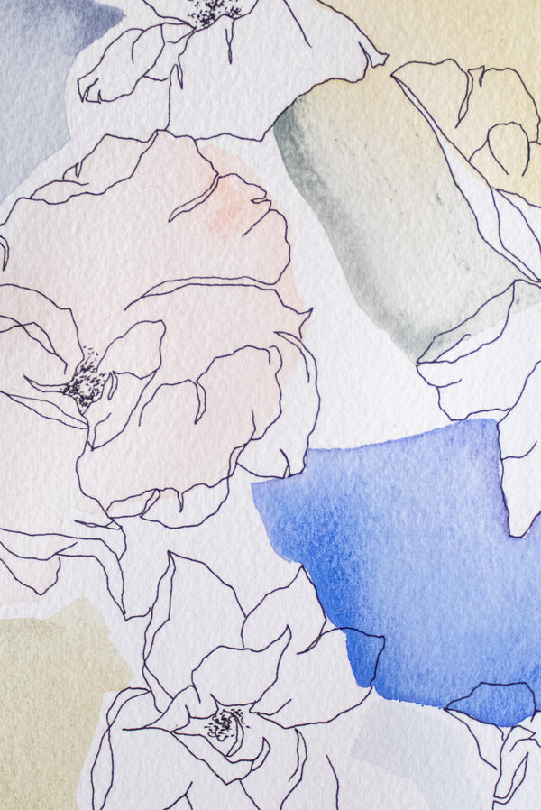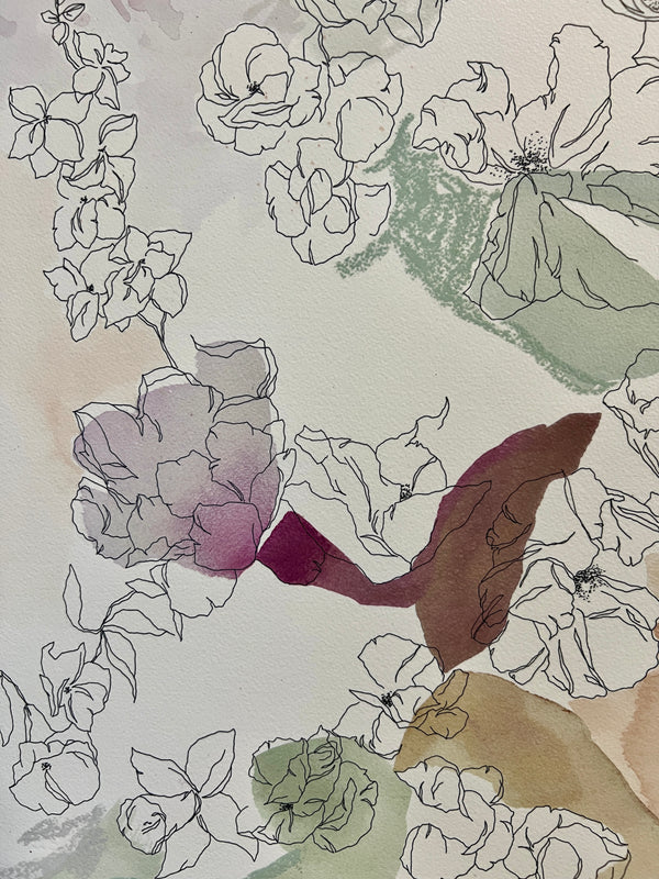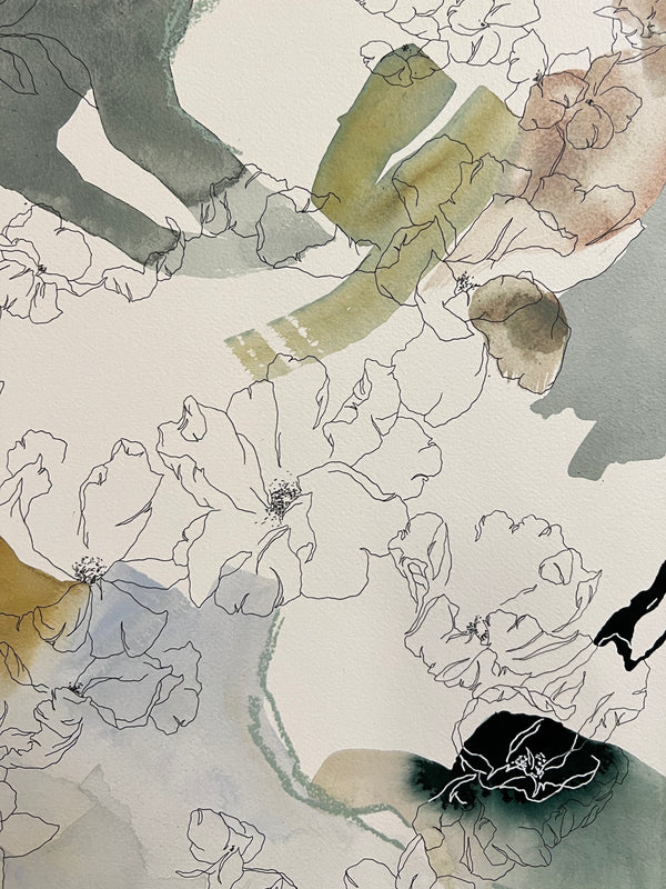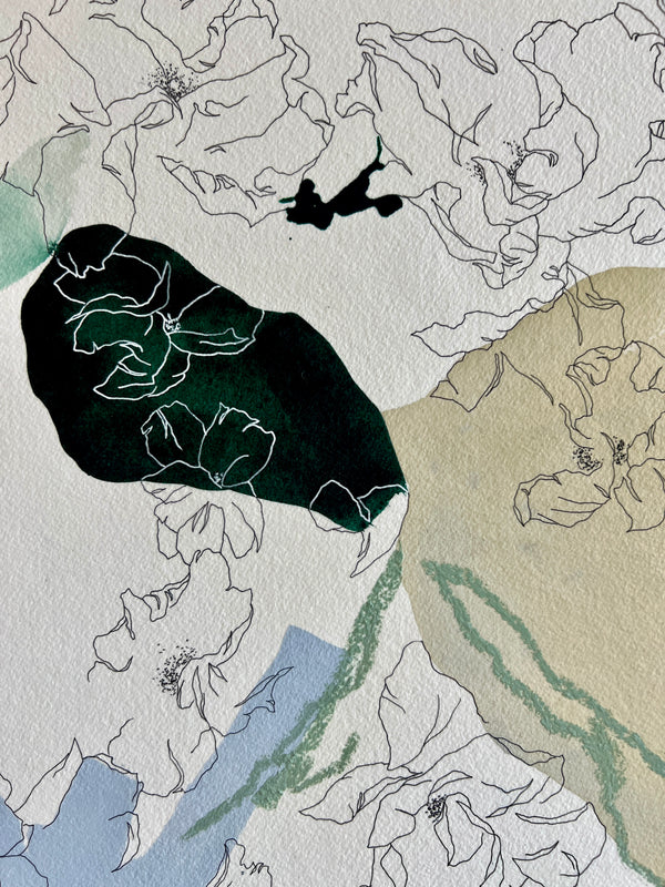 Meredith Mejerle Rush is a contemporary botanical artist living and working in Athens, Georgia. After receiving her BFA in Art from The University of Georgia, Meredith spent the next five years surrounding herself with flowers and other natural elements curating and composing unique compositions in a three dimensional matter. Her time spent studying the organic lines within floral compositions inspired her to begin creating abstract and minimal line drawings--layering colors, lines and textures as if each composition was a landscape within itself. Today her art focuses on capturing the movement and intimate details in the natural world to represent brief moments in time.