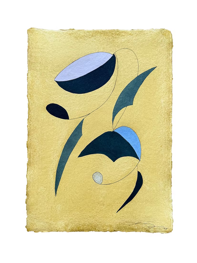 Mixed media painting on medium weight, handmade cotton rag paper with hand deckled edges
