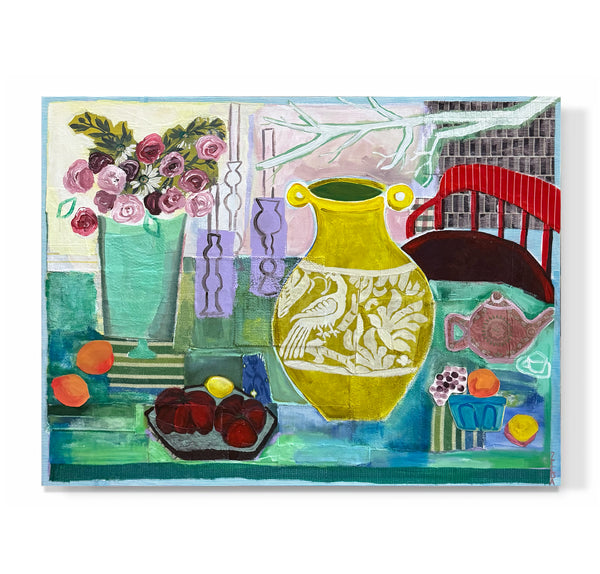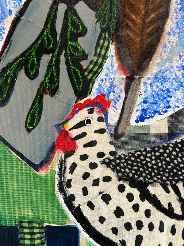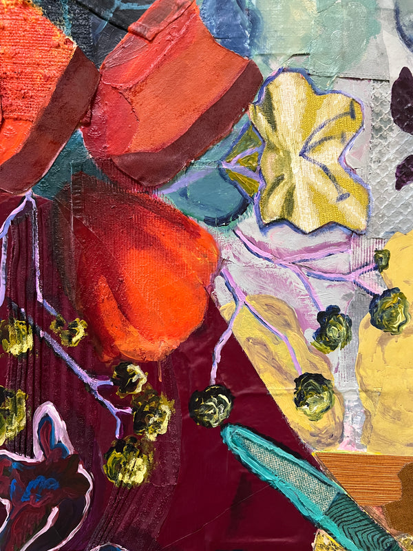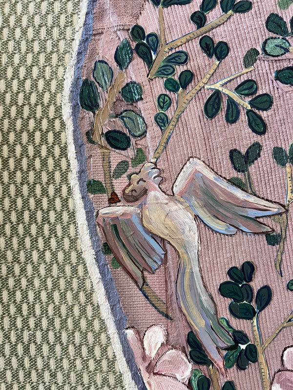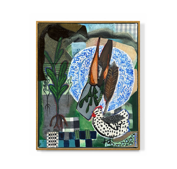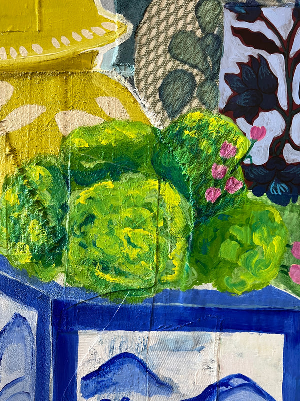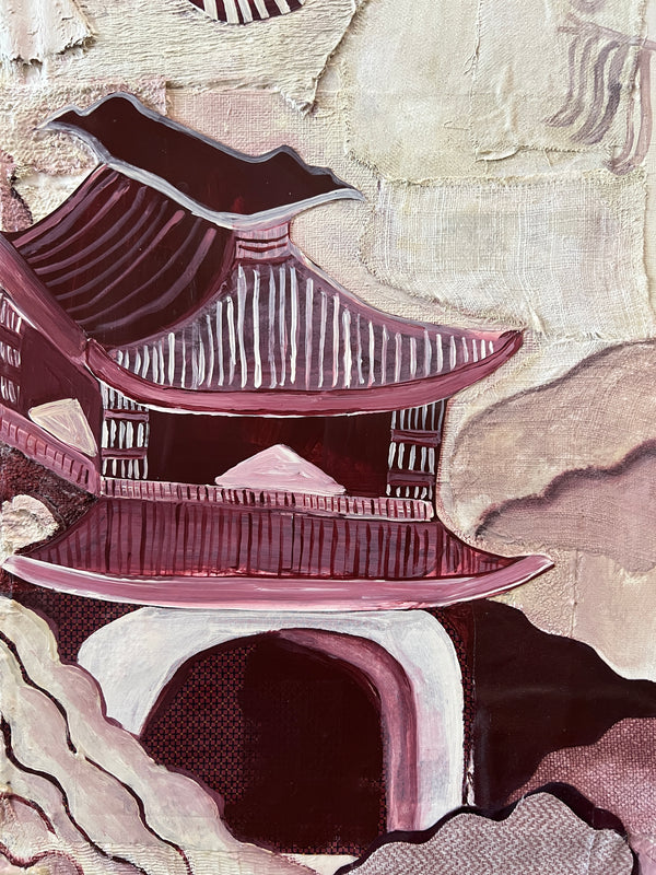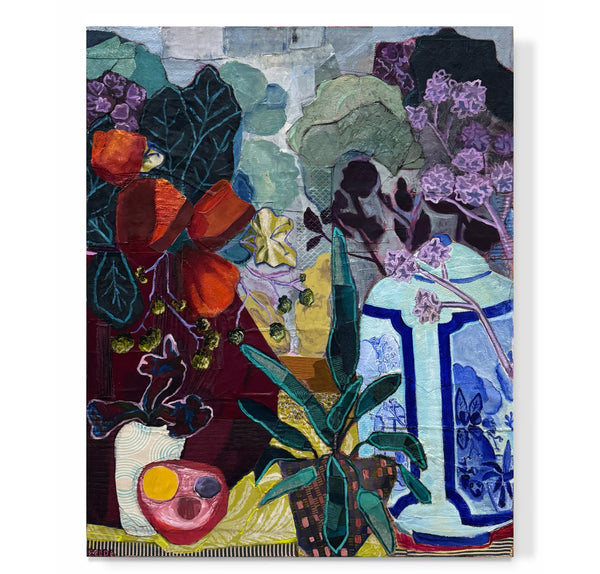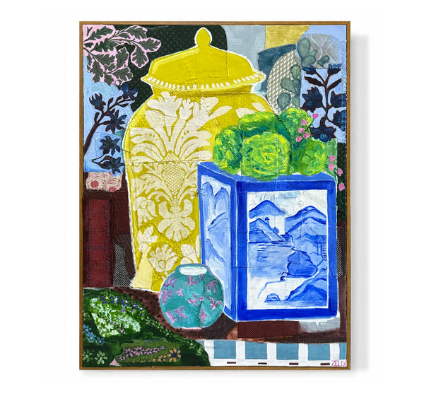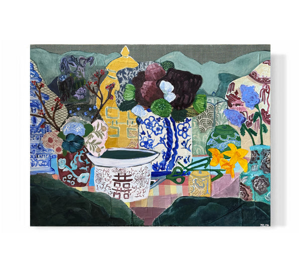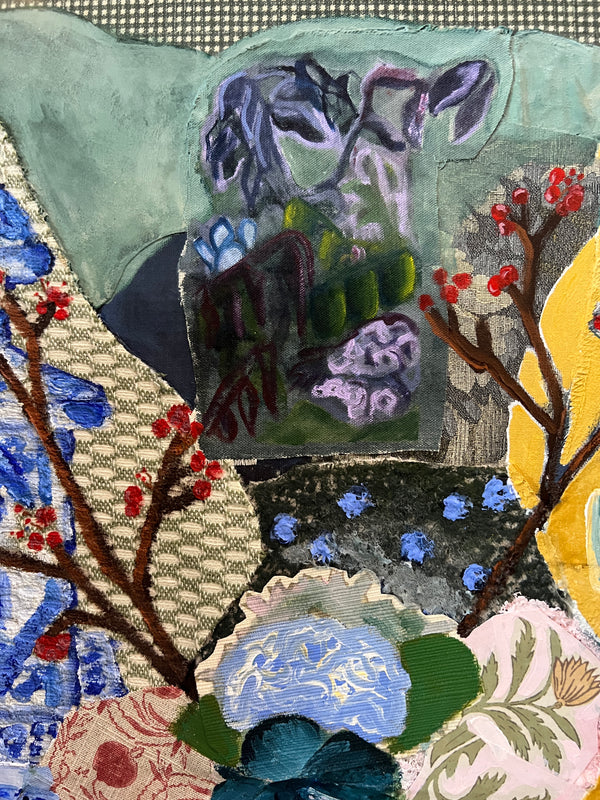 Zelda Speight-John is an emerging artist based in Austin, Texas. Her current work incorporates textiles, paint, paper, and various mixed media to explore the relationship between nature and domesticity. Through collage, she often depicts landscapes and decorative objects that bear traces of the natural world. Zelda believes that humans are inherently drawn to nature—celebrating its wildness while simultaneously attempting to capture and contain it, placing it on a shelf or a wall.