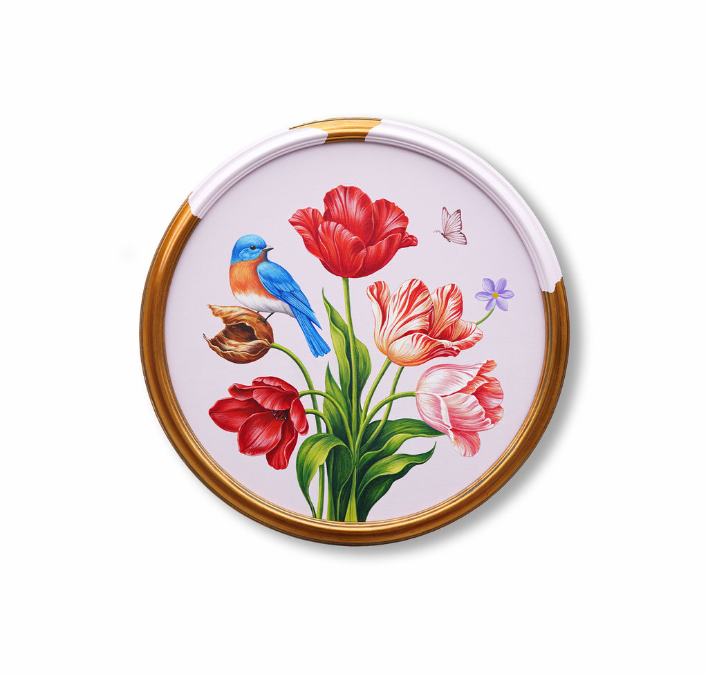 20" diameter canvas framed to 22.25"