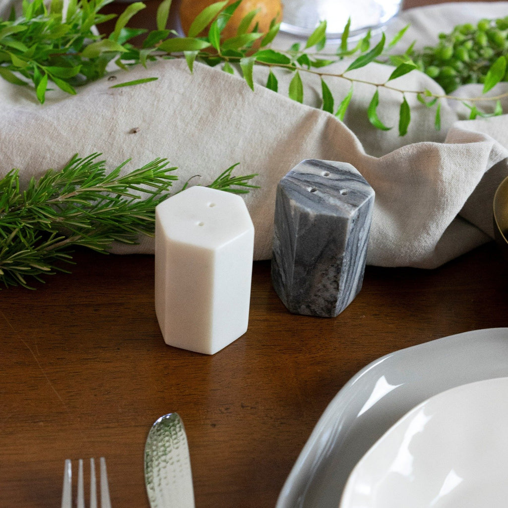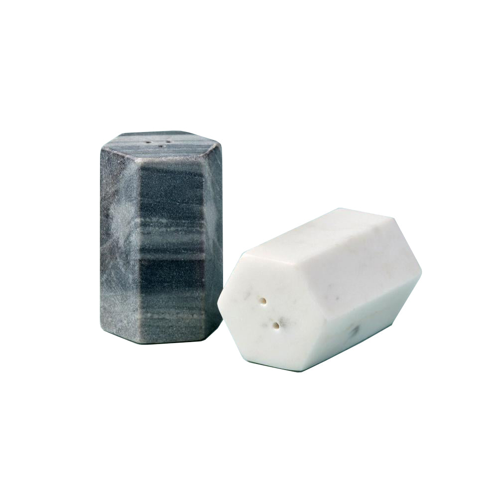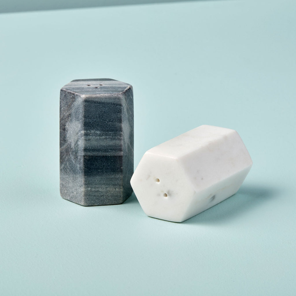 A timeless addition to any kitchen, the Anzio White & Gray Marble Salt & Pepper Set is an elegant set ready for every day use and special occasions. Stylish and strong, the marble contains natural tonal striations and variations variations of gray, white, and blue, ensuring each piece's elegance and uniqueness. This set is hand cut, crafted, and finished by our artisans in India.